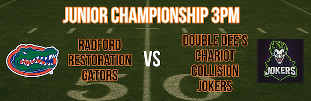 The Fall 2025 SIBFL Junior Season reaches its pinnacle as the Radford Restoration Gators and the Double Dee’s Chariot Collision Jokers collide for the Junior Championship. One team surged back from early adversity, the other dominated from the opening whistle, and now they meet with everything on the line.