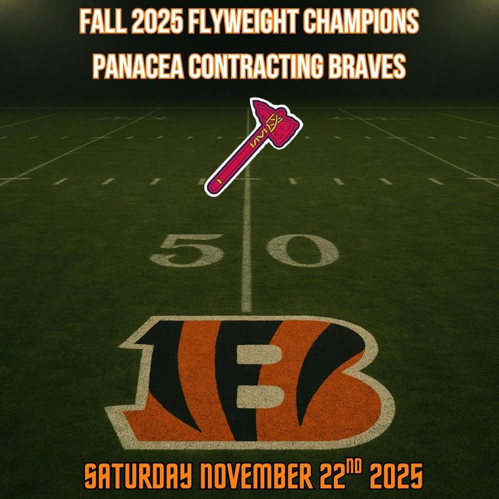 The Fall 2025 SIBFL Flyweight Season now arrives at its grand finale, the SIBFL Flyweight Championship, where two of the league’s toughest and most determined teams clash for the ultimate prize. The undefeated Panacea Contracting Braves, a program on the verge of cementing a dynasty, face off against the surging McLeod Chiropractic Golden Knights, a resilient squad powered by playmakers and hardened by adversity.
